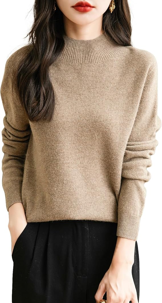 Women's 100% Merino Wool Seamless Sweater Mock Neck First-Line Ready to Wear Long Sleeve Knitted Pullover Tops