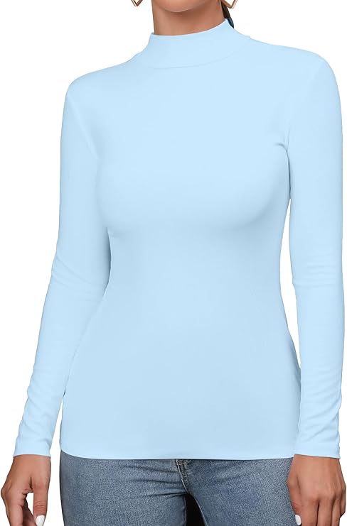 2 Pack Women's Mock Neck Shirts, Long Sleeve Turtleneck Tops Casual Comfy T Shirts Stretch Fitting Trendy Tee