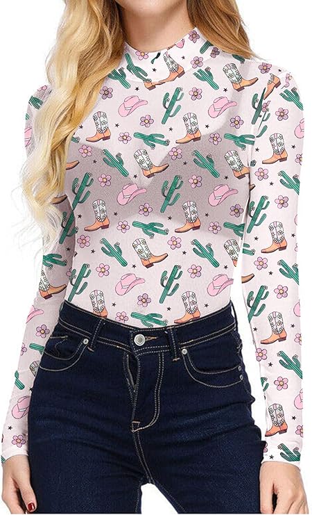 Western Mesh Tops Womens Mesh Sheer Long Sleeve Layering Top Mock Neck Lace See Through Shirt Blouses